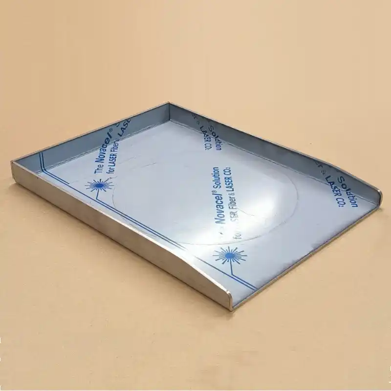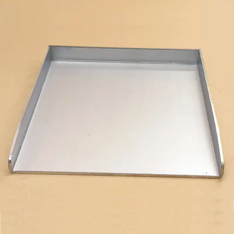 La pièce est découpée au laser, garantissant une précision parfaite des contours et des finitions nettes. Elle est ensuite pliée avec soin, intégrant trois plis de 35 mm sur trois côtés, conçus pour retenir efficacement les aliments pendant la cuisson et éviter toute chute dans le barbecue.